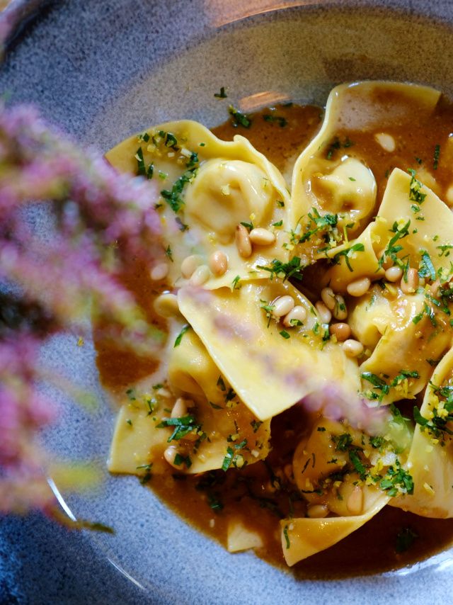 RAVIOLA DELL’AMORE | Mezichodem bude italská raviola plněná králíkem, piniemi a vyzrálým sýrem Comté v krémové omáčce z králičího fondu. Svěžest raviole dodává citronová gremolata.